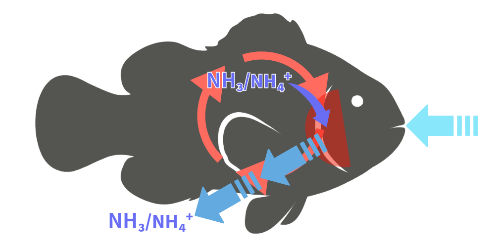 通常、魚は体内で発生したアンモニアの大部分を、エラを通じて水中へ排出しています。