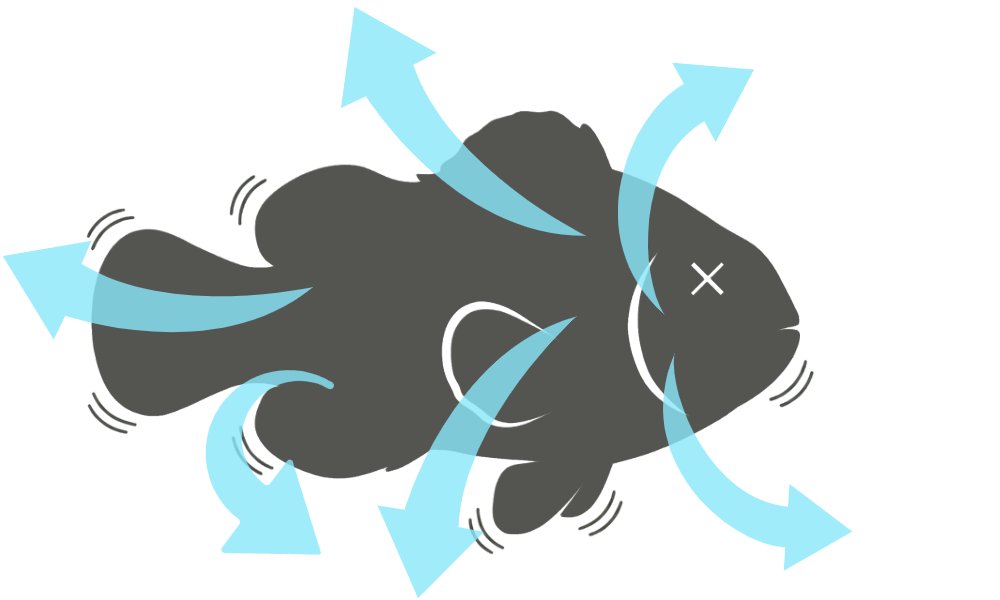 このような異常な泳ぎ方をしている場合、アンモニア中毒による中枢神経障害の典型的な症状の可能性が疑われます。