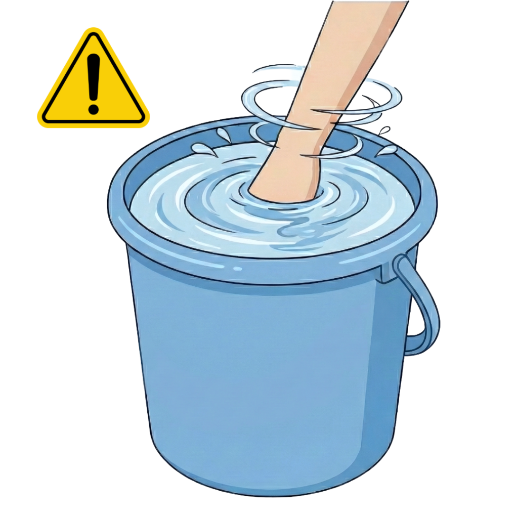 バケツの底を覗き込んで、塩の粒が完全に消えたことを確認しましょう。