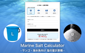 人工海水・比重計算器 1. 飼育する生体を選択 サンゴ(1.025) 海水魚(1.023) 低比重(1.009) カスタム(任意入力) ※サンゴと海水魚を同時に飼育している場合は、サンゴを選択してください。 目標比重 ( … 続きを読む 人工海水・比重計算器